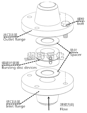 爆破片壓力敏感元件呈平板形。爆破片由周邊透縫(或中心處)及相鄰終止孔間構(gòu)成的減弱結(jié)構(gòu)控制,爆破沿透縫撕裂形成泄放通道。