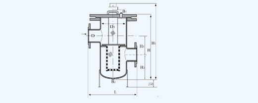| DN | in | D1 | L | H | H1 | H2 | 有效過濾面積 m2 |