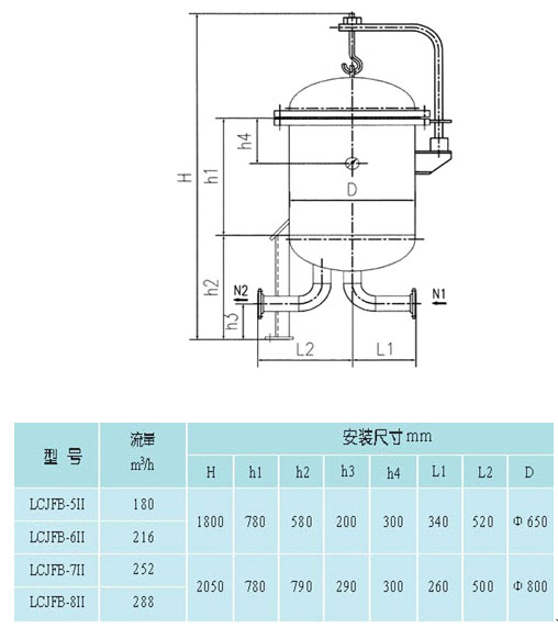 ②進出口N1、N2接管規(guī)格,LGJFB-5、6II為DN100、PN1.6,LGJFB-7、8II為DN150、PN1.6